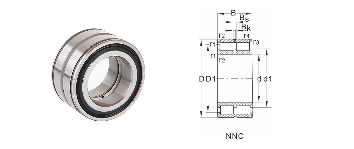 Dòng NNCL...: Loại vòng bi tang trống hai dãy này có một vòng trong với ba mặt bích liền và một vòng ngoài trơn. Vòng ngoài có hai vòng giữ nằm trong rãnh chu vi ở cả hai bên của đường kính mương để giữ vòng ngoài và cụm ổ trục. Do đó, những vòng bi này không thể chịu được bất kỳ lực dọc trục nào.