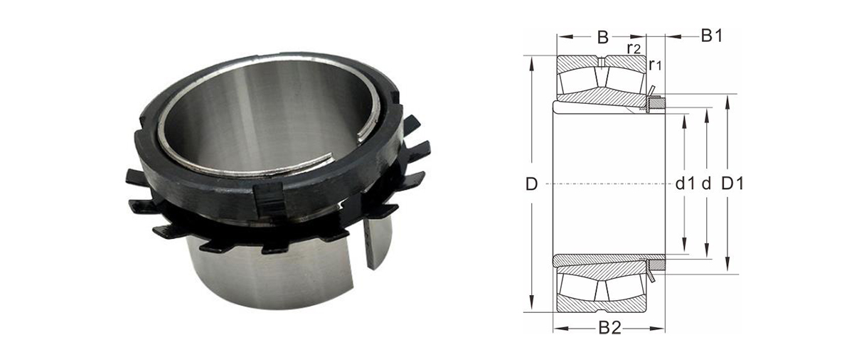 Vòng bi | Ống lót buộc chặt | φd1 | d | D | B | r1,r2 phút | Tải động | Tải trọng tĩnh | Mỡ bôi trơn | Dầu bôi trơn | B1 | B2 | D1 | e | Y1 | Y2 | yo | Vòng bi | Ống lót buộc chặt |
